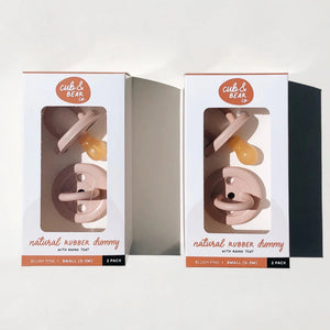 Each pack comes with two(2) Blush Pink Natural Rubber Dummies from Cub & Bear Co. A soft yet warm colour, this blush pink rubber dummy is perfectly paired with shades of pink, neutrals and much more. Complement so many outfits with this beautiful coloured rubber dummy, but don’t compromise on safety: